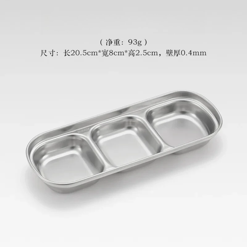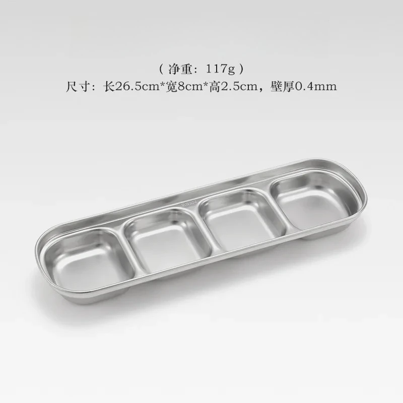 1PC Stainless Steel Multi Grid Seasoning Dish Partitioned Sauce Container Portable Dipping Bowl for Outdoor Camping Kitchen