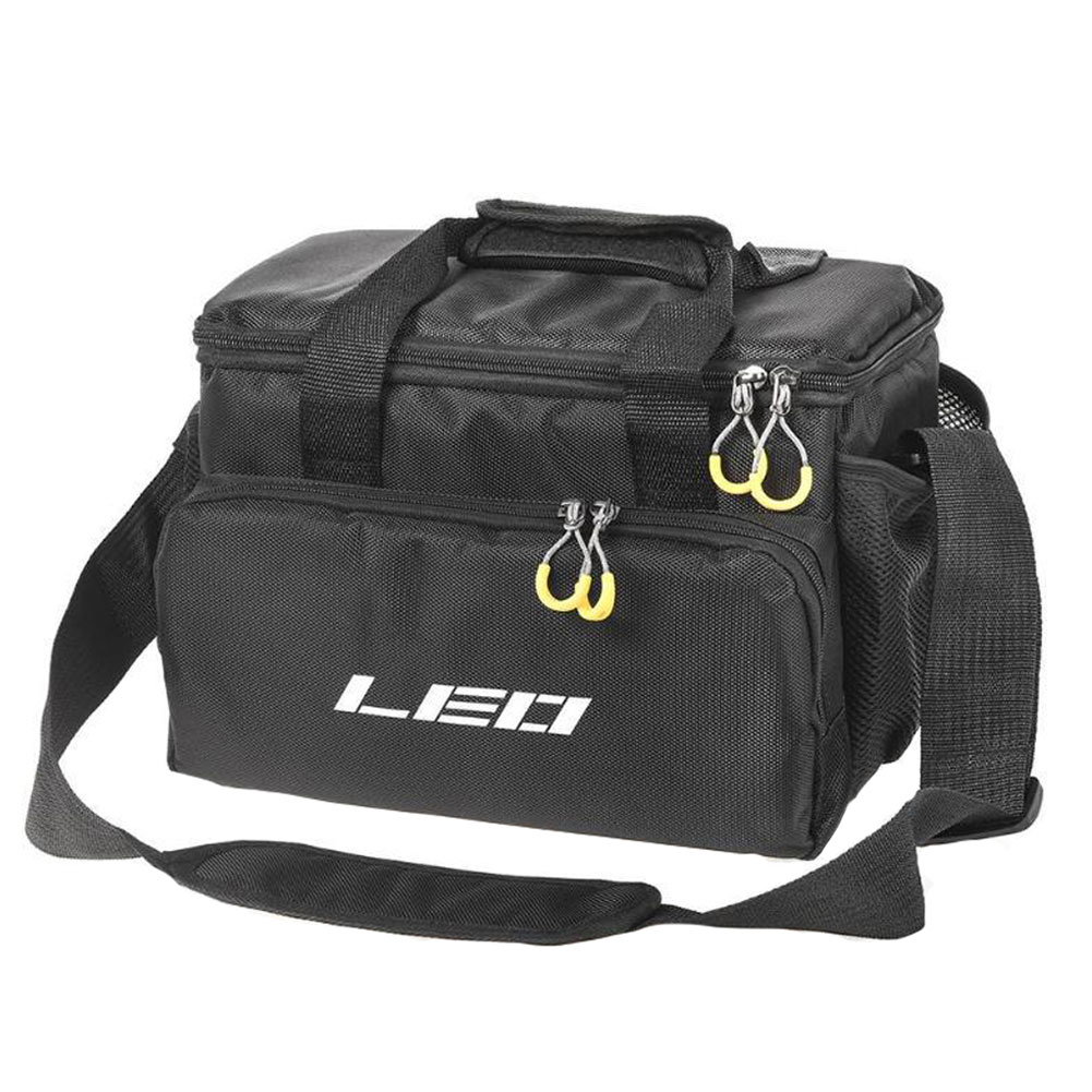 Made of 1680D canvas, this fishing tackle storage bag is very durable, wear-resistant and long lasting.Fishing bag has a main compartment, a small pocket and two side mesh bags, can store a lot of fishing accessories.A shoulder strap with adjustable buckle fit for different people.