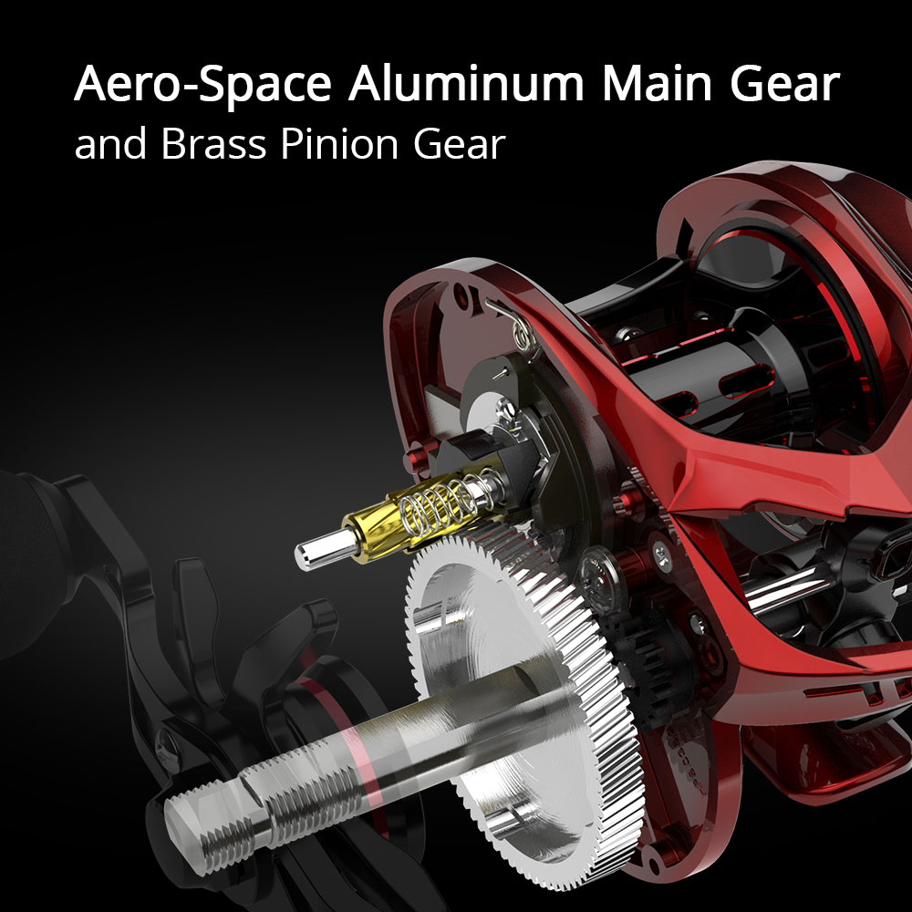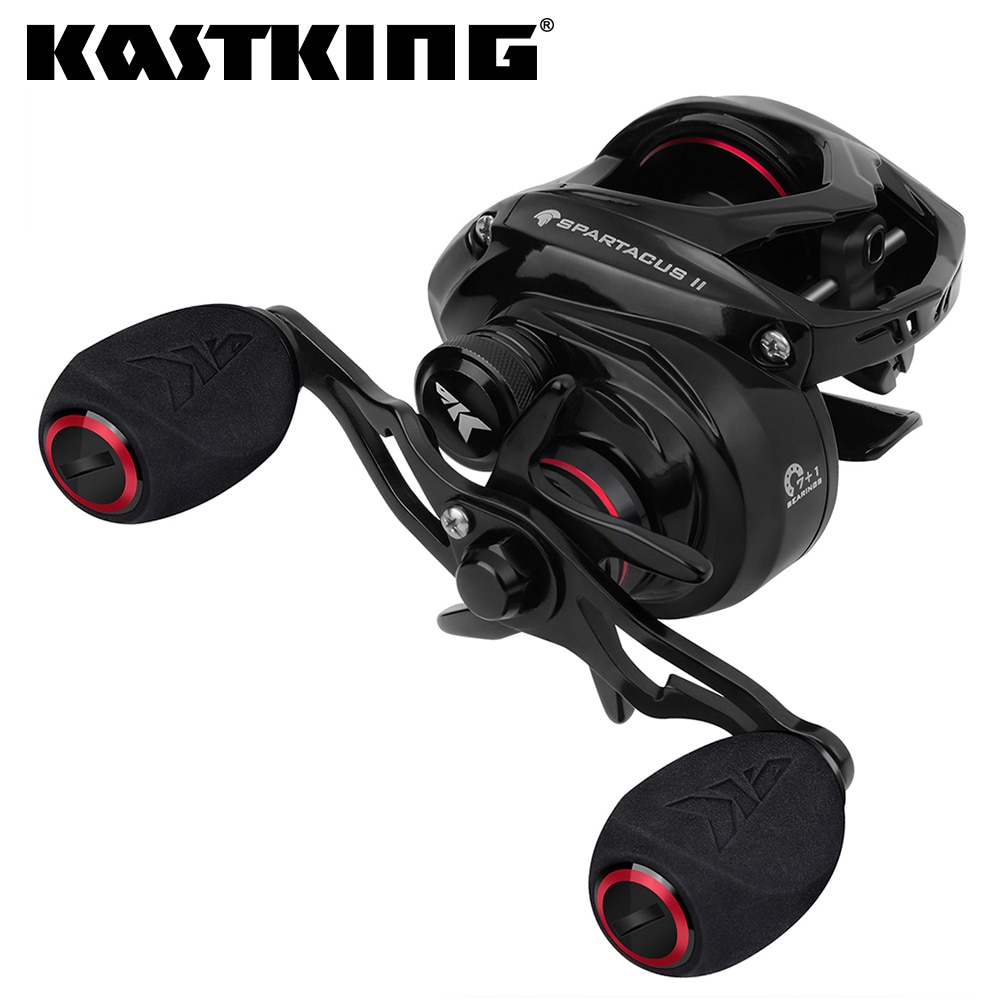 SMOOTH- A Spartacus II bait casting reel has: superior shielded 7 + 1 corrosion resistant ball bearings, CNC anodized aluminum spool with power launch and aluminum handle for smooth casting, powerful precision machined hardened aluminum main gears, and KastKing logo embossed hi-grade EVA handle knobs. With an aluminum main gear, the reel is only 170g. That is unheard of for a reel under $50!