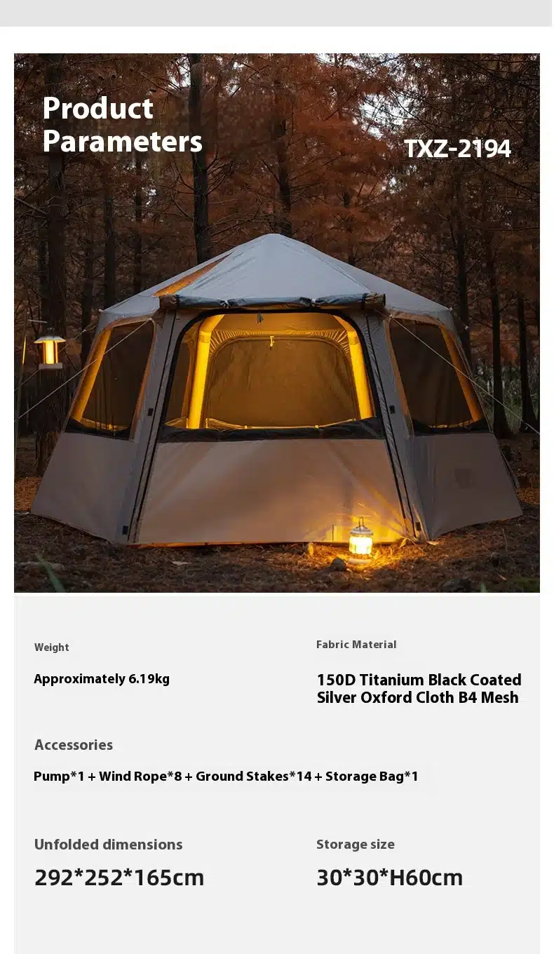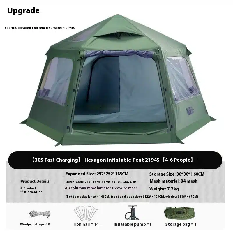 ame: Outdoor 4-6 person inflatable hexagonal tent