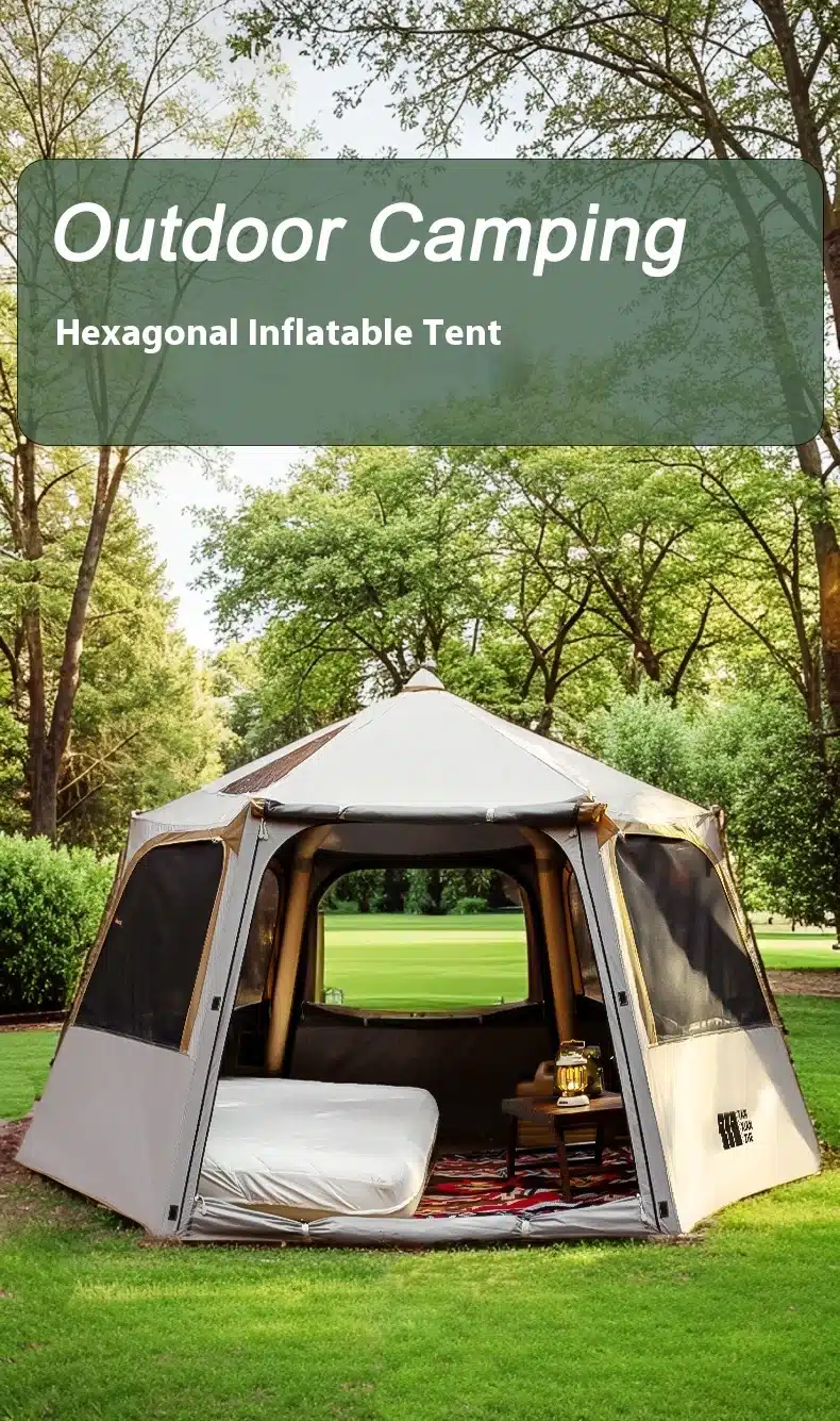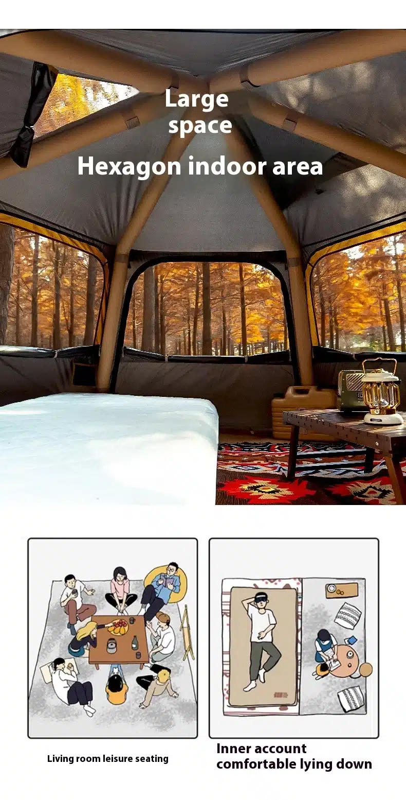 Large Camping Inflatable Air tent 4-6 people Waterproof Tent Hiking Camping Tent Traveling hexagonal Awning tent with Canopy