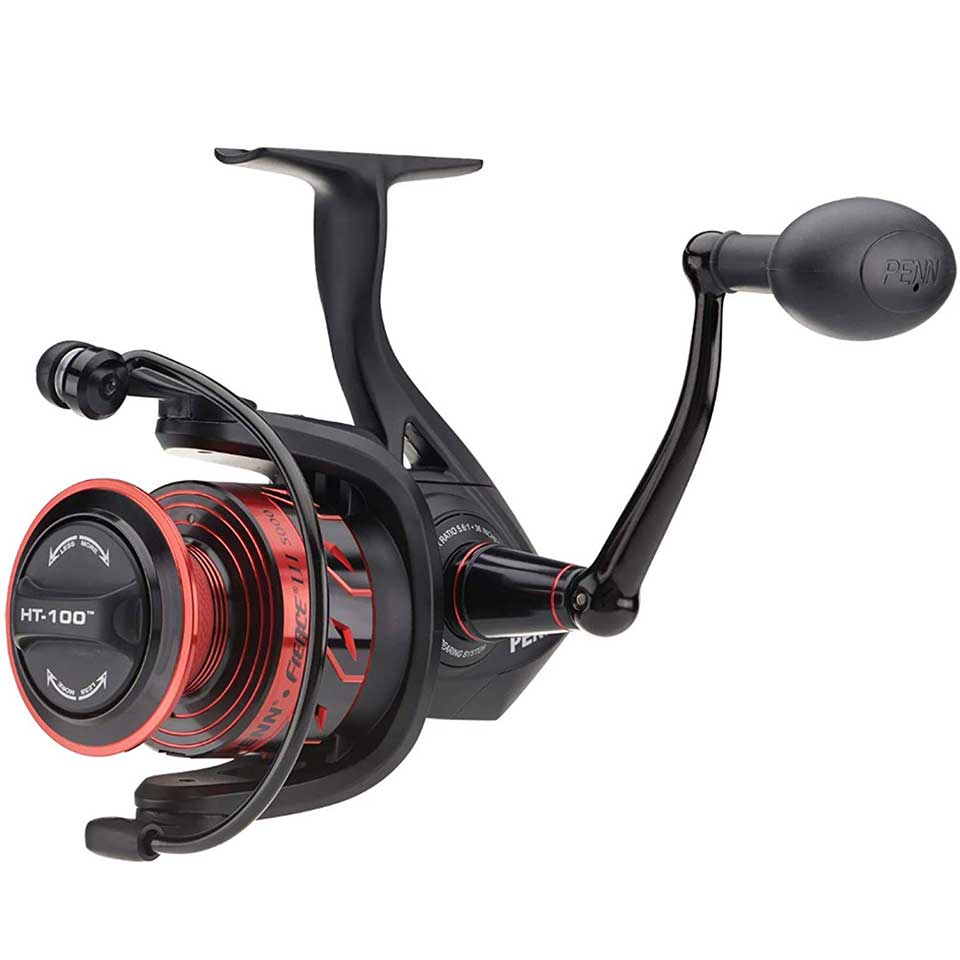 The PENN® Fierce® III spinning reels are available in a range of sizes, from 1000 to 8000. Featuring a full metal body and sideplate, along with PENN HT-100™ carbon fiber drag washers, the Fierce III can handle anything inshore or nearshore. A 4+1 shielded stainless steel ball bearing system ensures smooth retrieves while the heavy-duty aluminum bail wire and superline spool allow for easy line management.