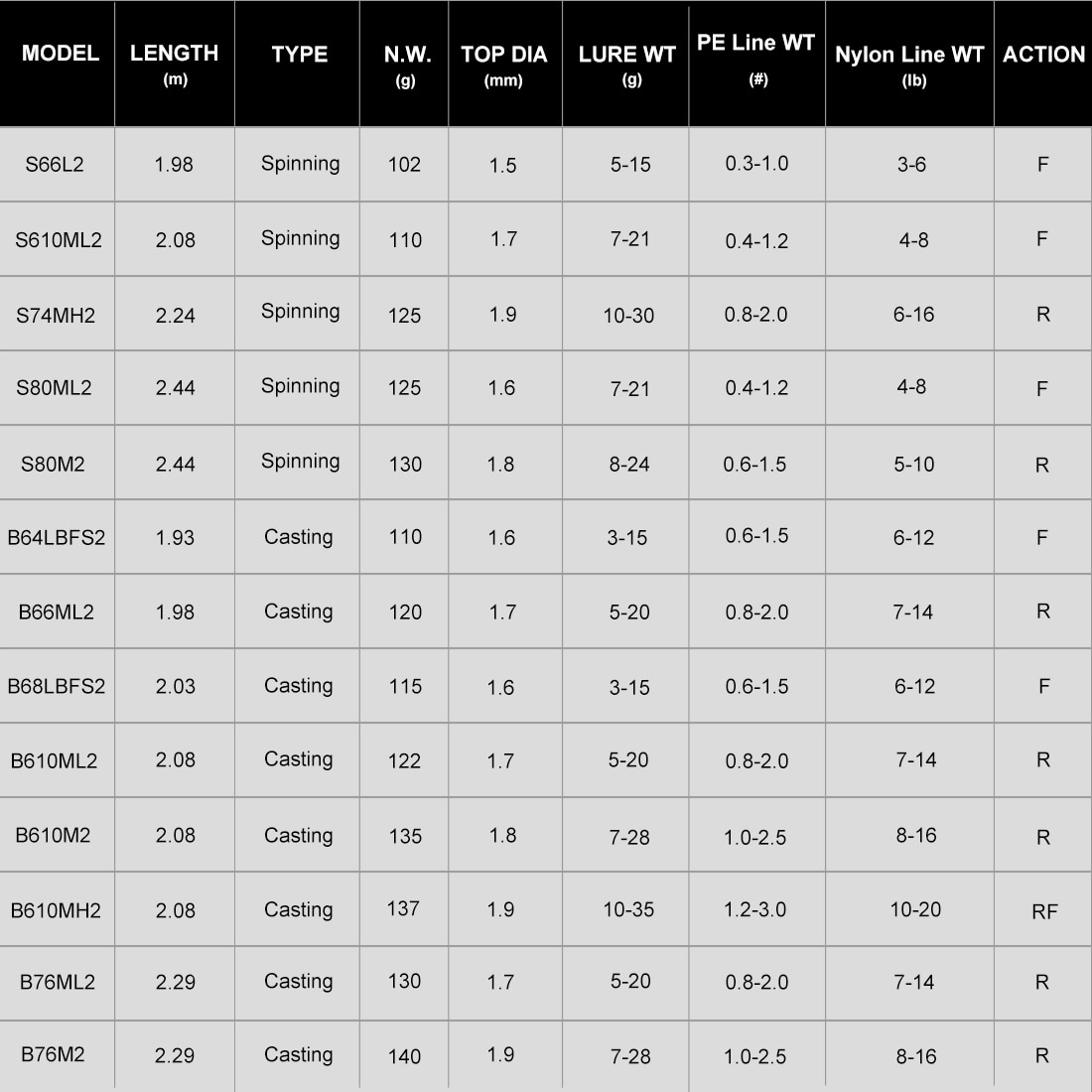 An entry-level product suitable for novices, with a wide range of optional specifications. Various models from short to long feet can cover various fishing grounds and situations.